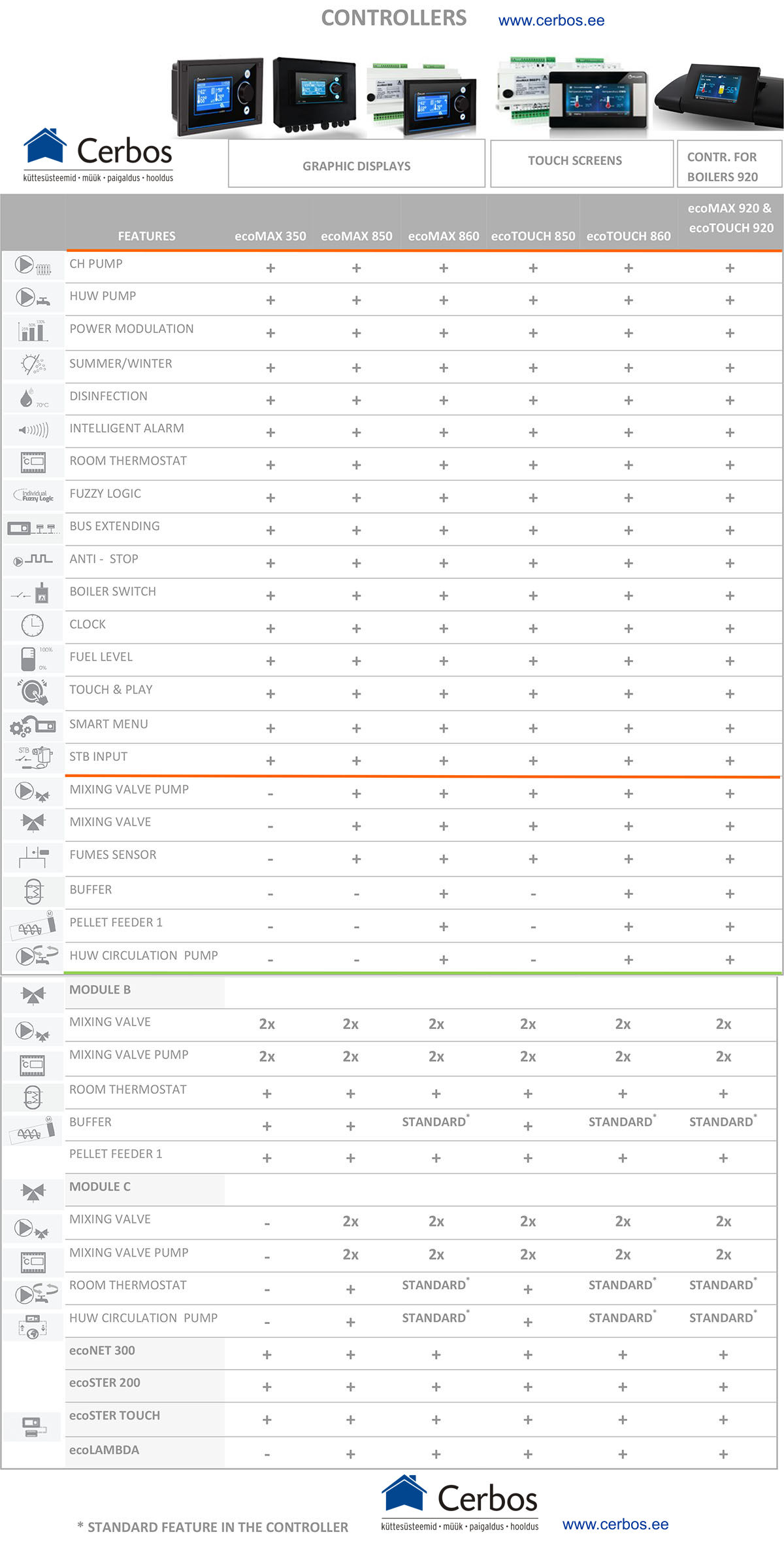 Pelletipõleti on varustatud juhtseadmega, mis tagab põleti optimaalse töötamise lähtudes kasutaja poolt etteantud töörežiimist ning parameetritest. Automaatika saab ühendada ruumi temperatuurianduriga ja välisõhu temperatuurianduriga. Standardkomplektis on katla ja sooja tarbevee andurid. Juhtplokk võimaldab juhtida ka küttesüsteemi ning tarbevee pumpade tööd, samuti katla segamissõlme tööd.